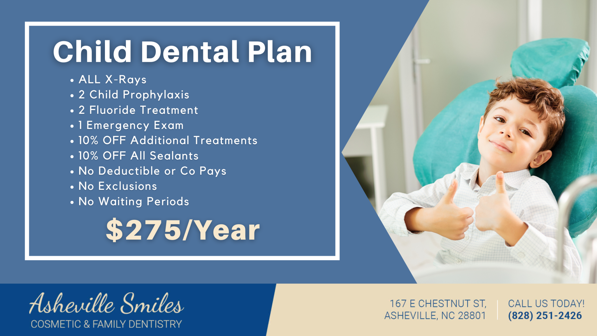 Asheville Smiles Cosmetic and Family Dentistry charges $50 for checks returned due to insufficient balance.